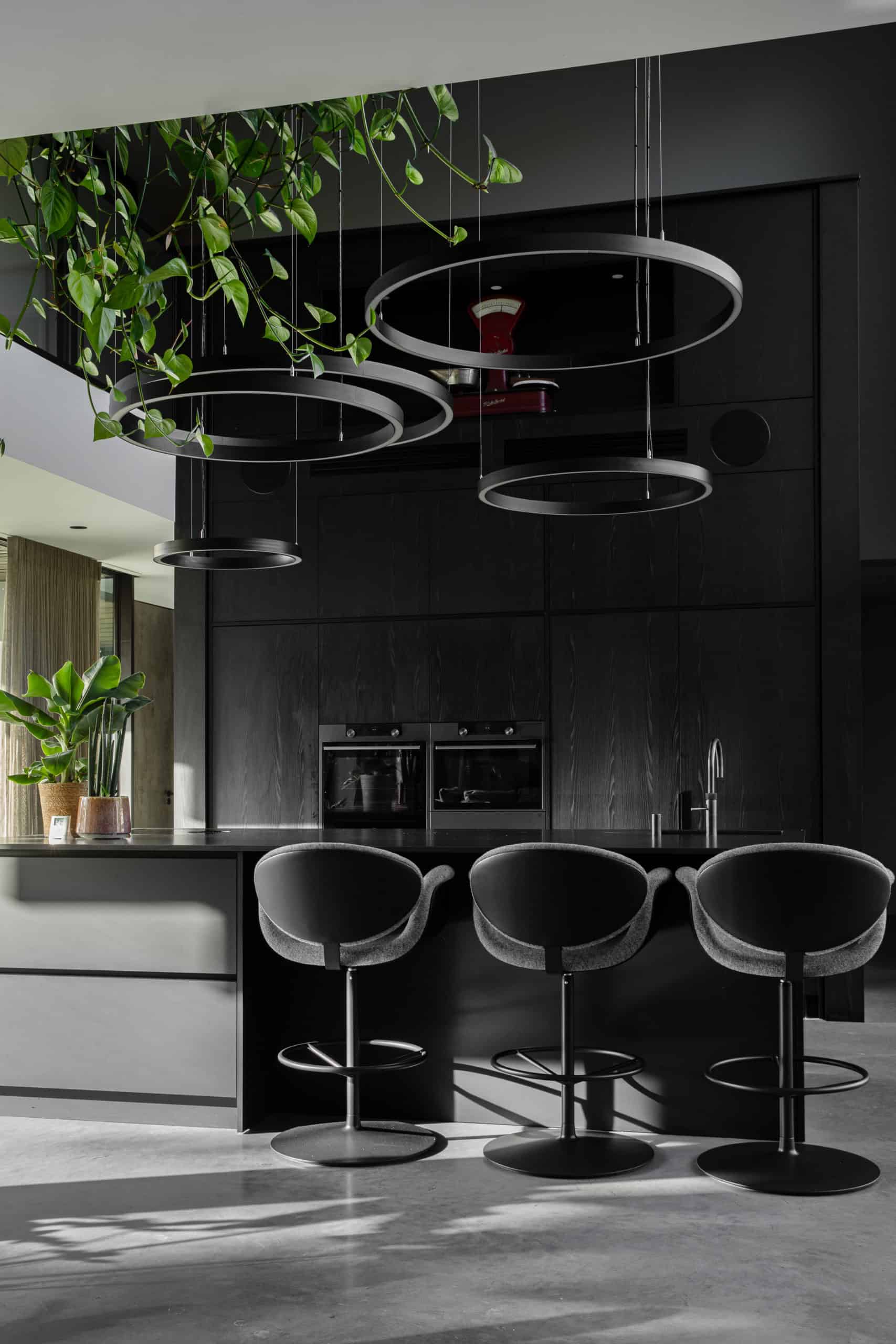 Gevlinderd woonbeton bij een luxe donkere keuken
