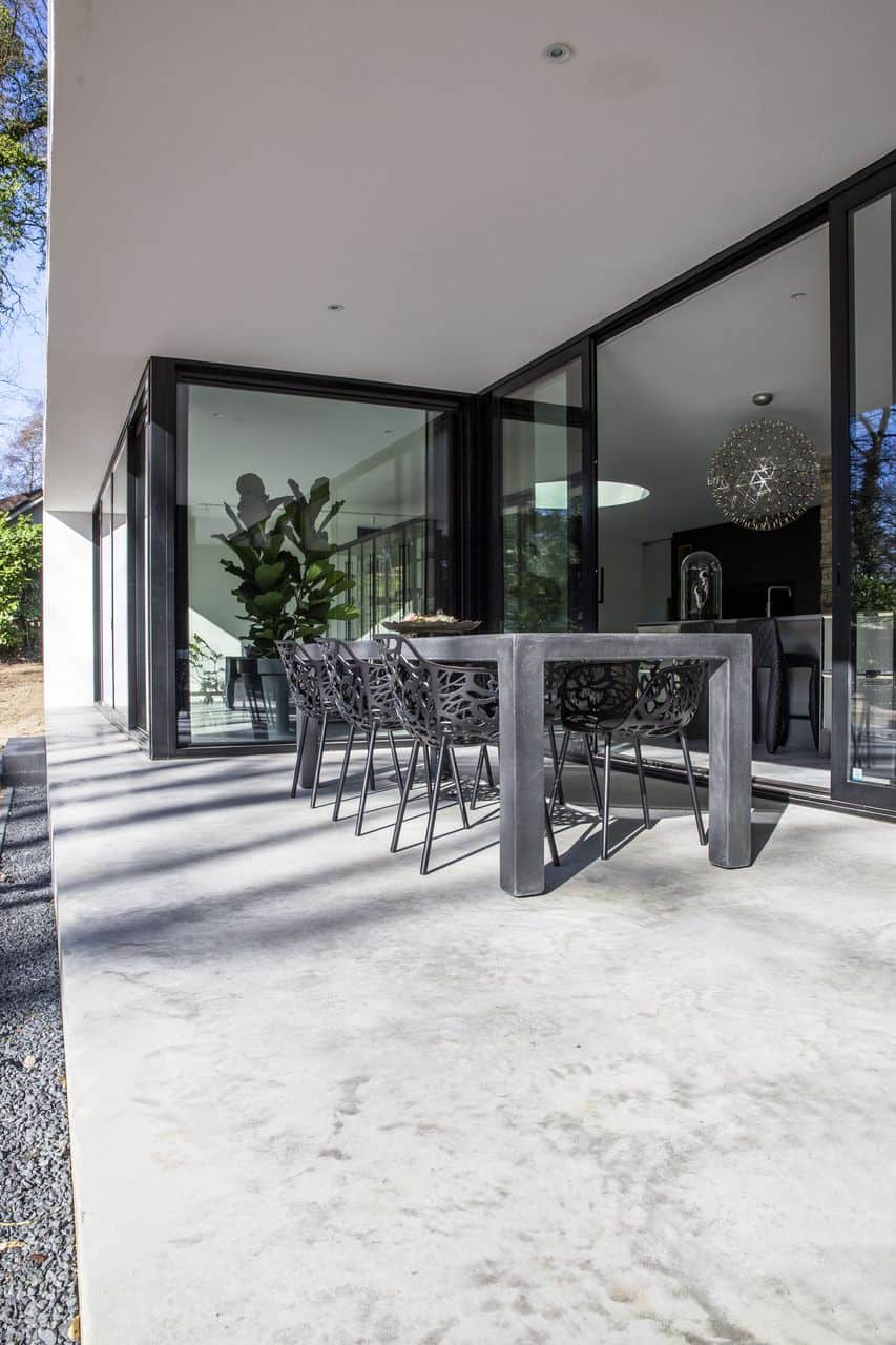 Een betonnen terras past perfect in verschillende tuinontwerpen. Of je nu kiest voor een moderne, strakke of landelijke tuin. Dankzij de naadloze afwerking is het terras eenvoudig schoon te maken en bestand tegen weersinvloeden.