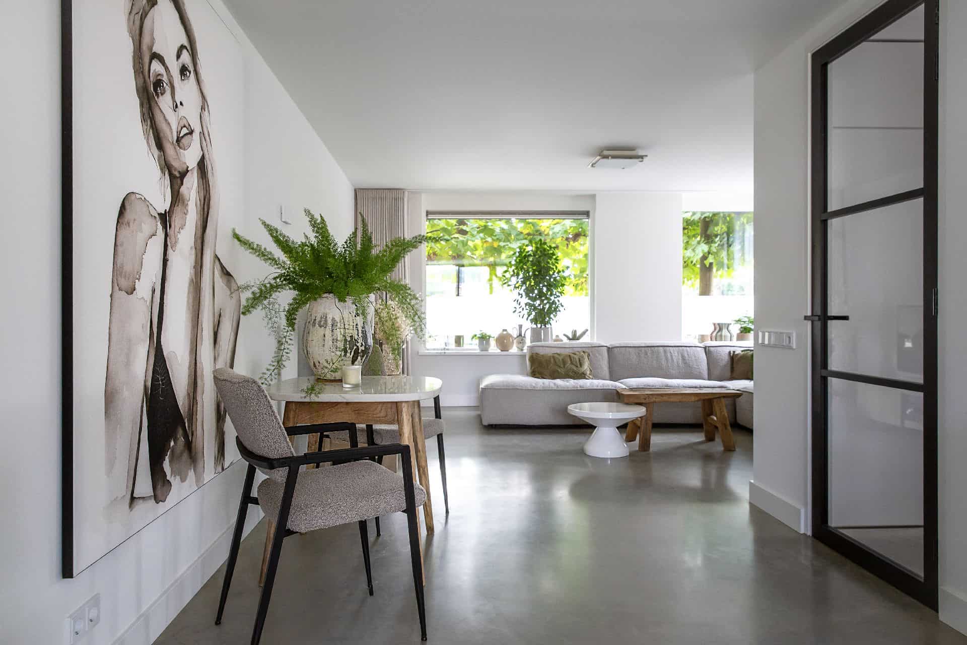 Gevlinderde betonvloer in de woonkamer