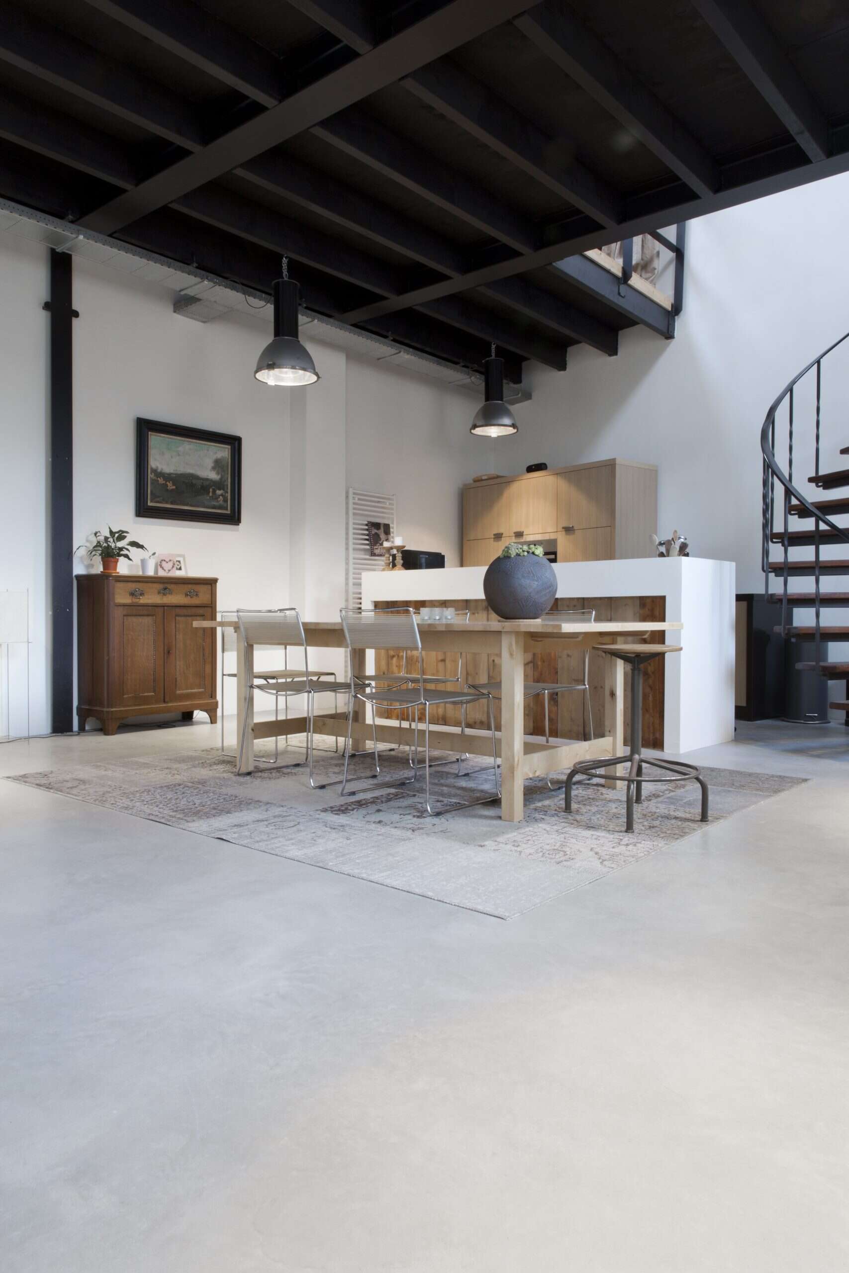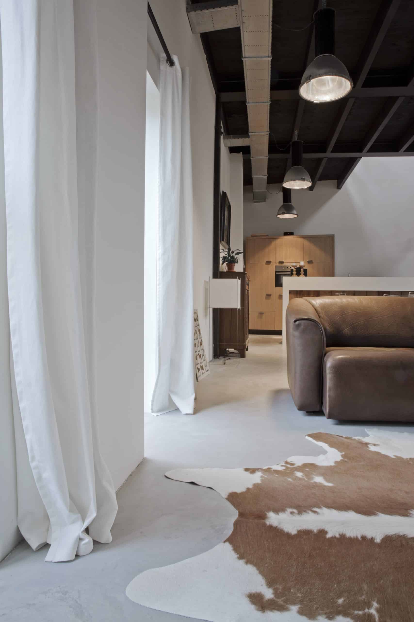 In dit project in Tiel hebben we een prachtige gevlinderde betonvloer in de kleur basisgrijs mogen realiseren. Het is een verbouwde woning met veel industriële elementen. Het ruige van het beton past perfect bij de sfeer in deze woning!