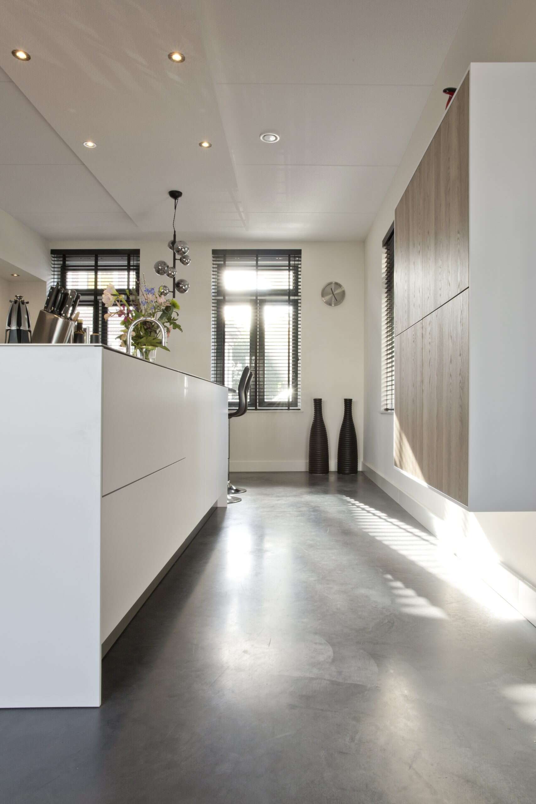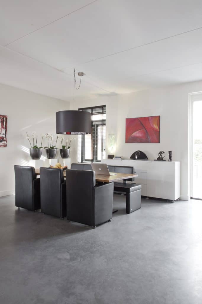In dit project in Tiel hebben wij een gevlinderde betonvloer in de kleur 75% donker- en 25% middengrijs mogen maken. Het is een ruime, lichte woning geworden waarbij de kleur van de vloer goed uitkomt. Het totaalplaatje klopt helemaal!