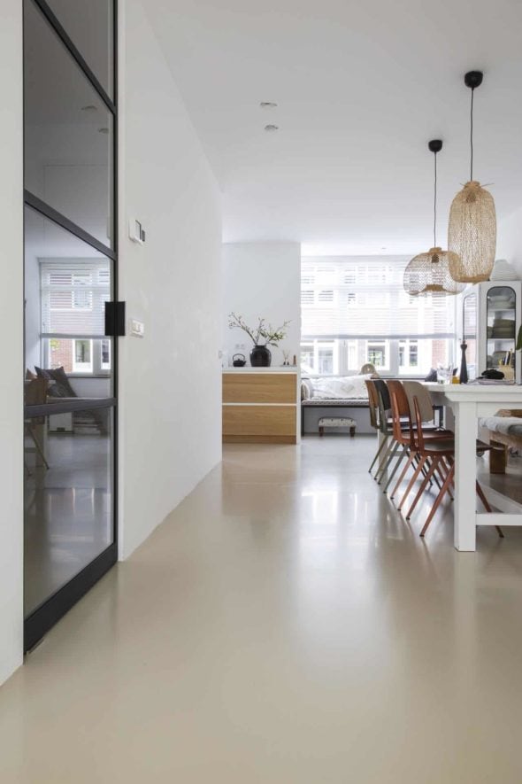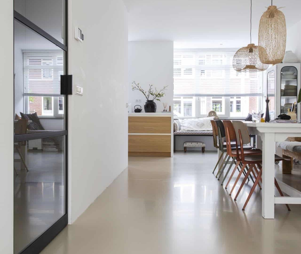 Wat geweldig is aan deze vloer is dat u deze vloer naadloos door uw hele woning kunt leggen. Alleen in de badkamer kan de minerale gietvloer helaas niet. Is dit voor u wel een must? Overweeg dan eens de mogelijkheden voor de PU gietvloer. Dit type gietvloer is wél toepasbaar in de badkamer.