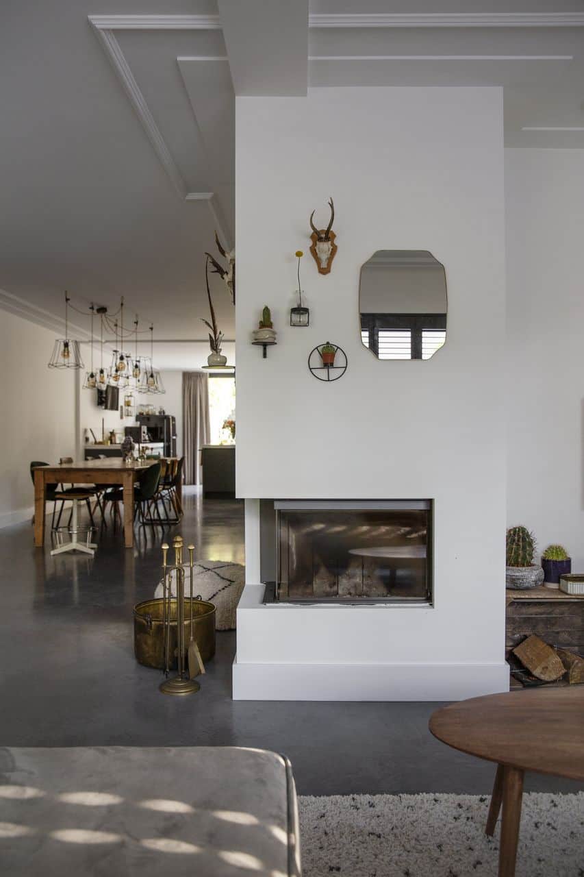 “We wisten eigenlijk al dat we heel graag een betonvloer wilden”, vertelt Nina. “We hebben een huis gekocht, alles gestript en weer helemaal opgebouwd. Qua interieur kozen we voor hele strakke, witte muren en voor een betonvloer.”