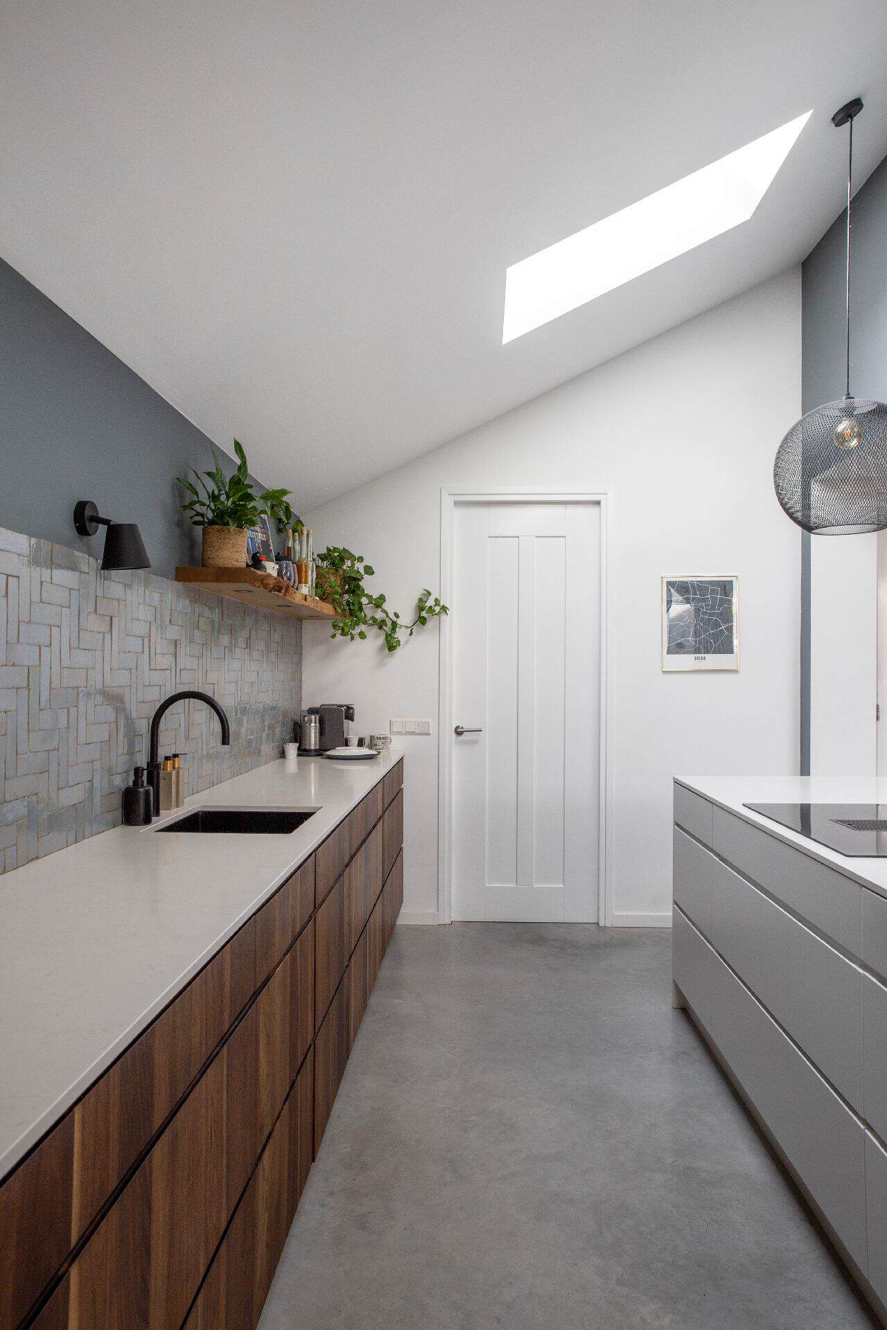 Beton ciré is een soort betonstuc die zowel op de vloeren als wanden aangebracht kan worden. Het wordt met de hand aangebracht en is waterdicht. Dit maakt het een unieke vloer die perfect past in de keuken. Beton ciré is maar enkele millimeters dik, kan zelfs over tegels aangebracht worden en is verkrijgbaar in iedere RAL- en NCS-kleur.